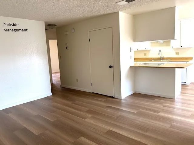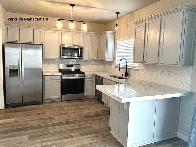 Immaculate home painted in a nice warm color. Plank flooring throughout. Living/dining room combo. Kitchen has quartz counter tops, stainless steel sink, microwave & refrigerator. Small breakfast bar. Inside laundry room with washer & dryer included. Two sliding glass doors leading out to backyard. Alarm system. Garage is detached with alley access and includes garage door opener. Close to McHenry Ave with a variety of shopping and restaurants